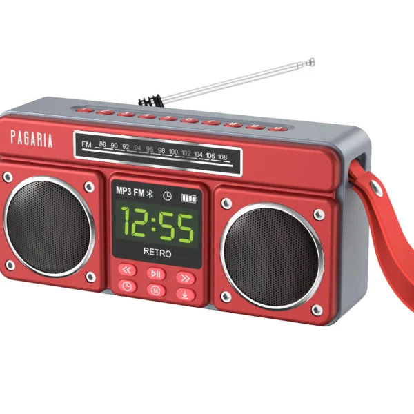 PAGARIA New Retro Portable FM Radio with 10 Watts Sound, Bluetooth Recording, Alarm Clock, USB/TF Card, Detachable External Antenna, Earphone & Aux Port