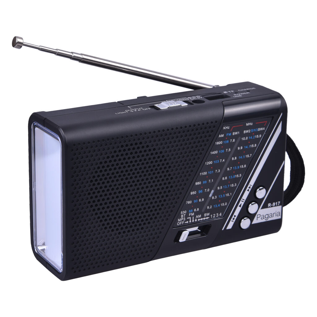 PAGARIA Portable FM/AM/SW Radio with 5 Watts Sound, Bluetooth/USB/TF, Earphone Port & Torch