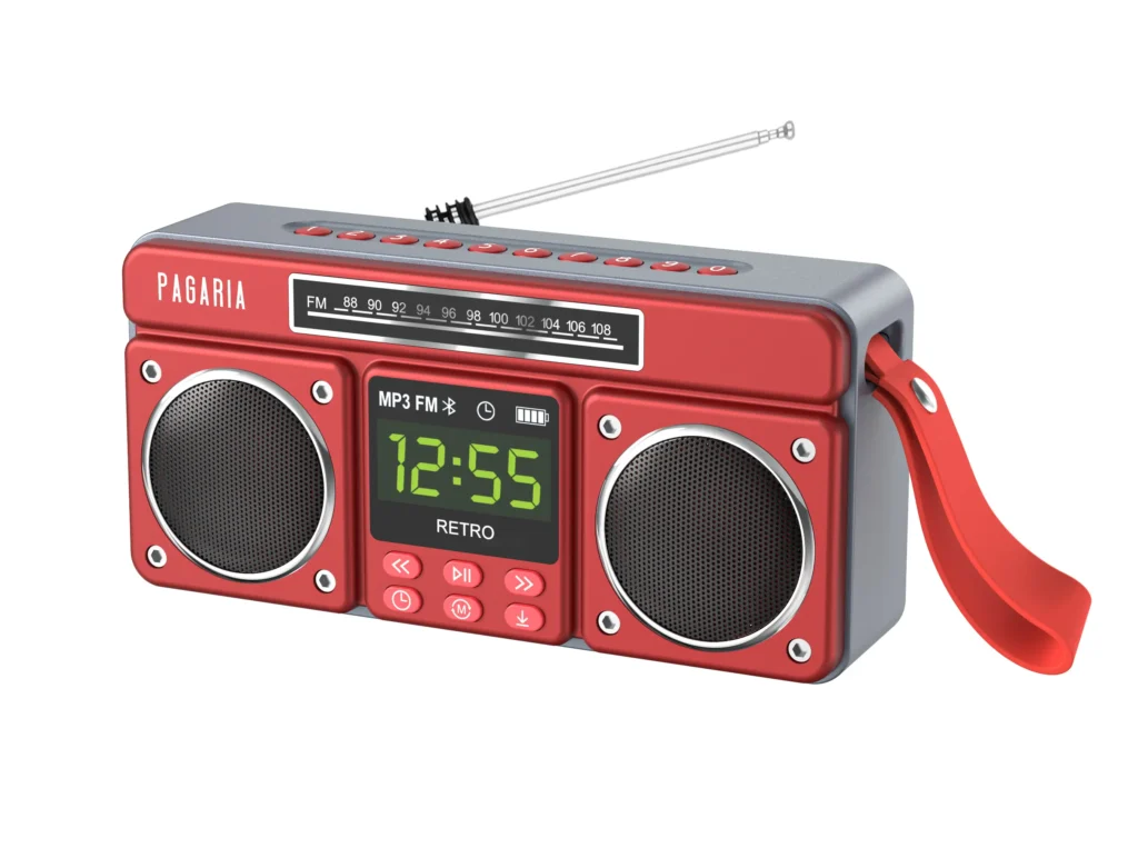 Pagaria WALKIE Portable Alarm Clock FM Radio, with Bluetooth, Earphone, Voice Recording, USB/TF Playback